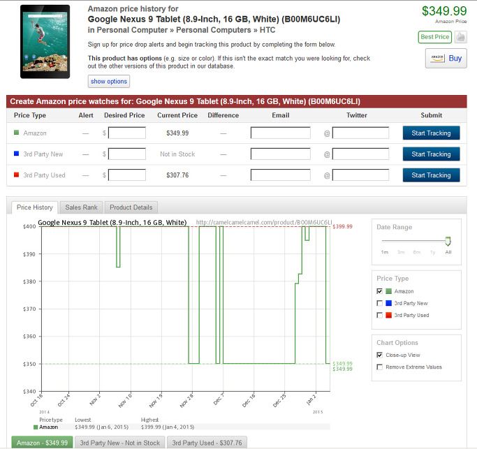 즉. 주기적으로 변경되는 아마존의 가격정보를 가지고 있어, 현재 내가 구입하고자 하는 물품의 가격이 과거에 어느정도 선에서 판매가 되었는지를 확인할때 참고하면 좋다. 또한 특정 물품에 대하여 email을 입력해두면 Price Tracking 정보도 받아볼수 있어 생각보다 유용하다.