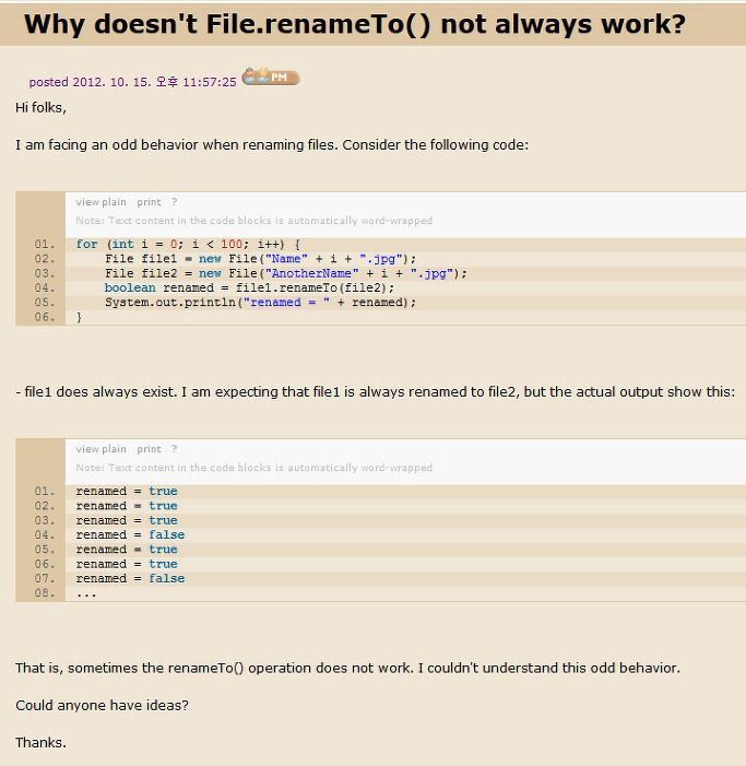 그리고 윈도우 환경에서 renameTo를 사용할경우 종종 정상적인 파일 객체인데도 불구하고 실패를 반환한다.